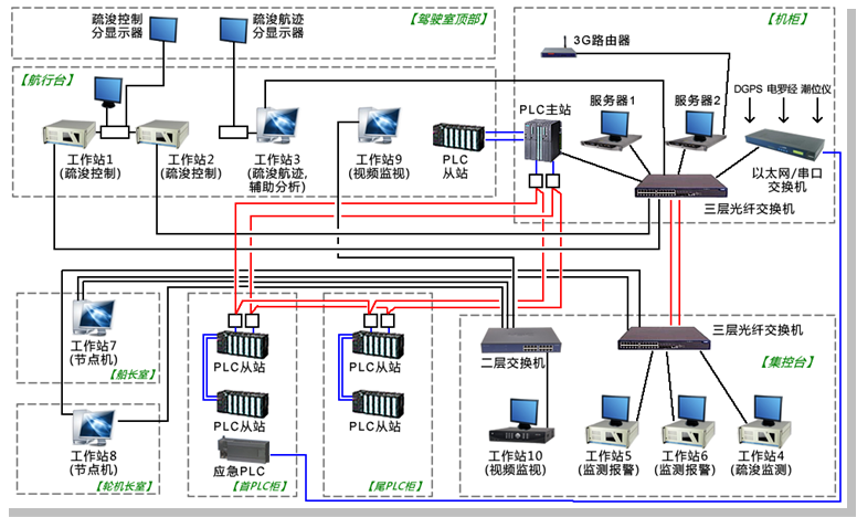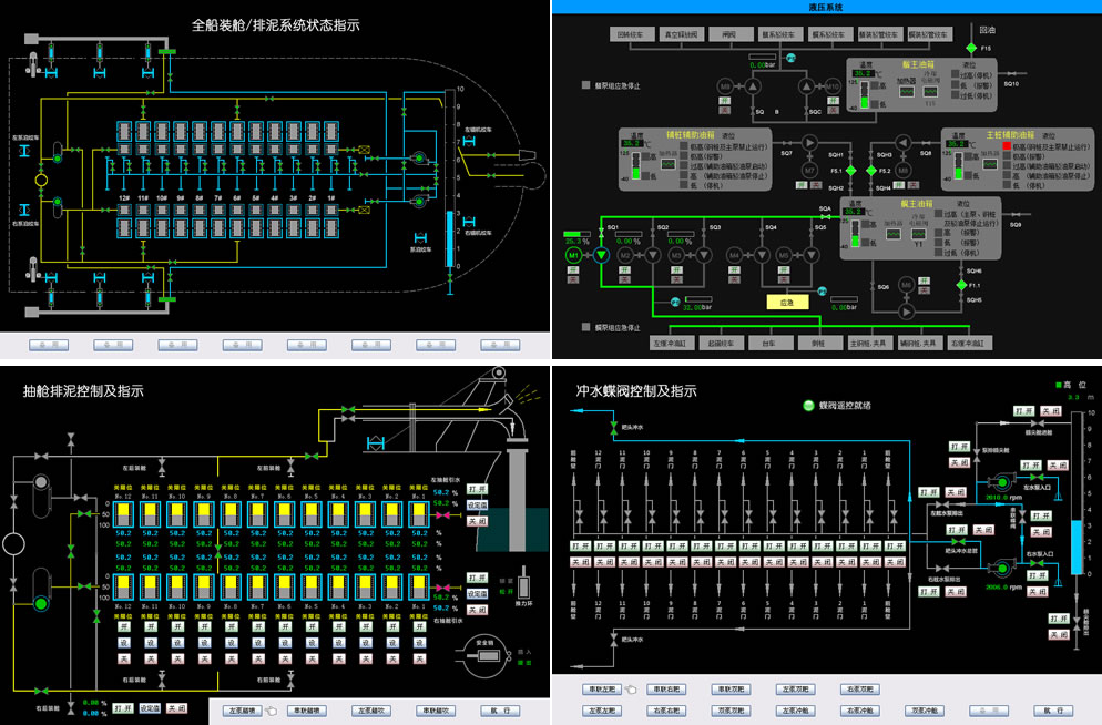 The system consists of a combination of separate subsystems--- consisting of several independent monitoring devices or manipulation devices such as dredging integrated control system, dredging positioning system, cabin monitoring and alarm system, video surveillance system, and computer network system.